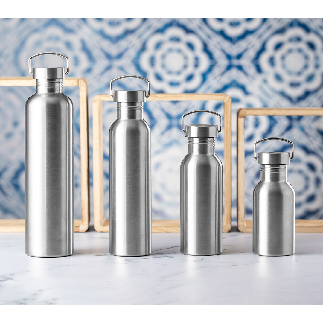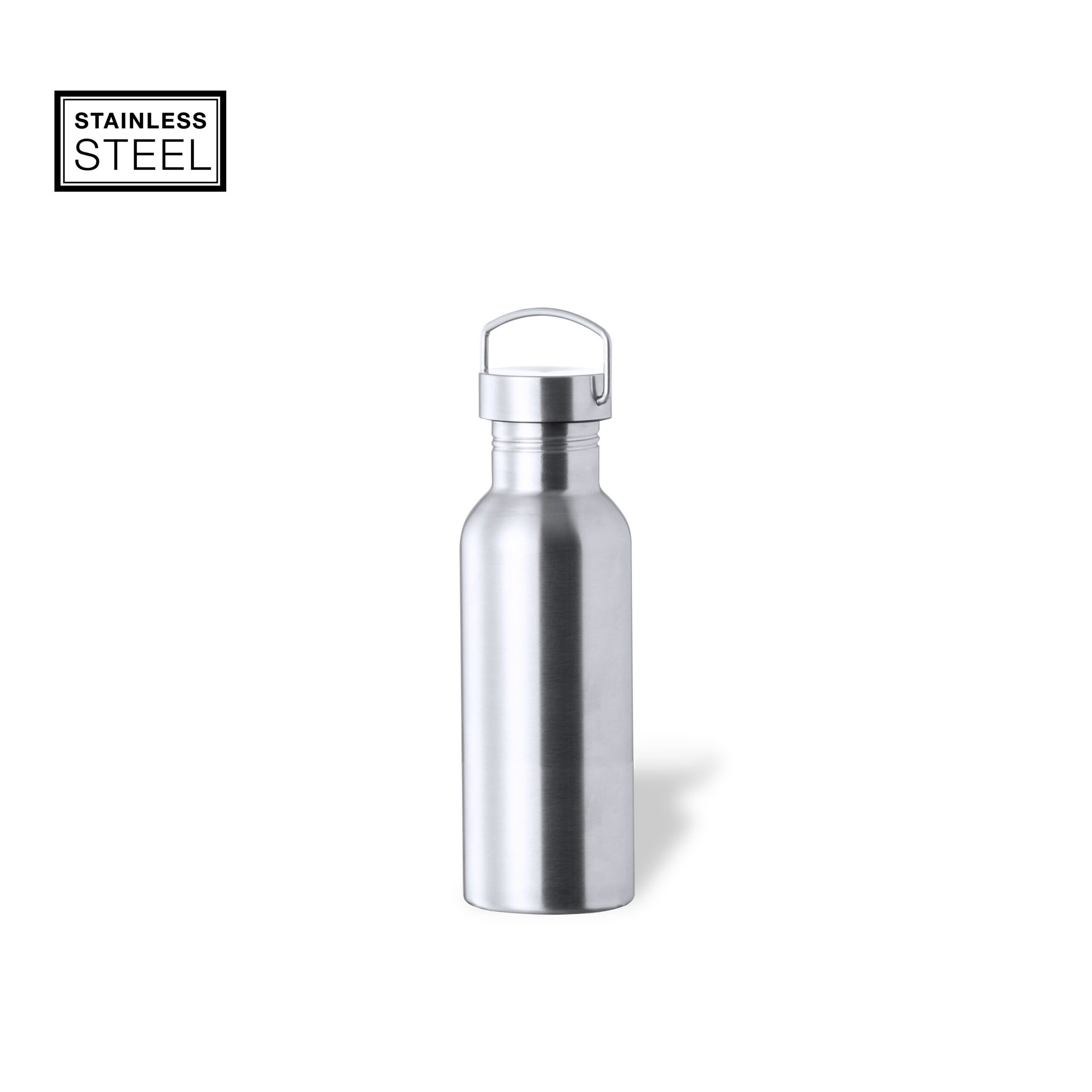 Bid贸n de 750 ml de capacidad, fabricado en acero inox de acabado brillo. Con original tap贸n a rosca en acero inox, a juego y con asa integrada. Libre de BPA y presentado en caja individual de dise帽o kraft.