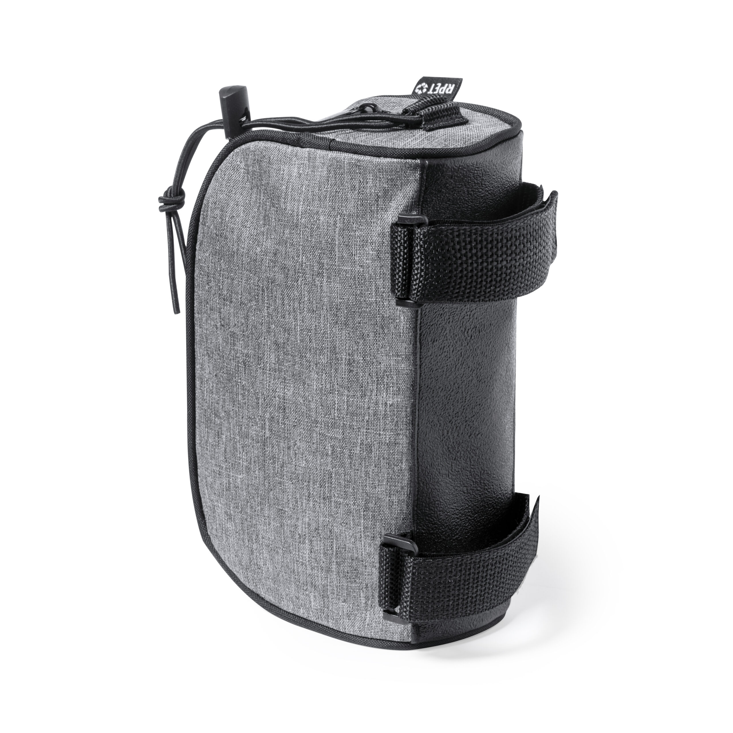 Bolsa para barra de patinete fabricada en resistente 600D RPET. De acabado gris jaspeado.con ribetes de refuerzo y compartimento principal con cierre de cremallera. Incluye doble cinta de ajuste en barra con cierre de velcro y cordón elástico con ajustador. Con distintivo RPET en etiqueta exterior. El material RPET se elabora a partir de plástico reciclado, para así fomentar la reutilización de residuos plásticos y ayudar a la sostenibilidad del planeta.