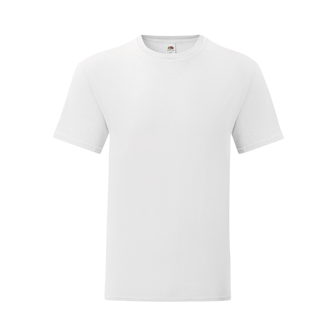 Camiseta adulto blanca Iconic de Fruit Of The Loom. Fabricada en material 100% algodón peinado Ring Spun de 140g/m2 hilado en anillo. De tacto suave y corte moderno, con cuello redondo estrecho de canalé 1×1 y tapeta a juego. Etiqueta fácilmente removible y disponible en tallas S, M, L, XL, XXL.