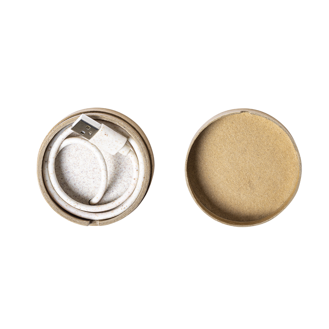 Original cargador inalámbrico circular de línea nature. Carcasa en cartón reciclado, contribuyendo a la conservación de los bosques y reduciendo considerablemente la huella de carbono, con superficie de carga y cable en caña de trigo. Compartimento interior para guardar el cable y poder llevarlo a cualquier lado. Indicador LED de estado de carga, compatible con smartphones con tecnología de carga inalámbrica y presentado en atractiva caja de diseño eco, con manual de instrucciones en español e inglés.