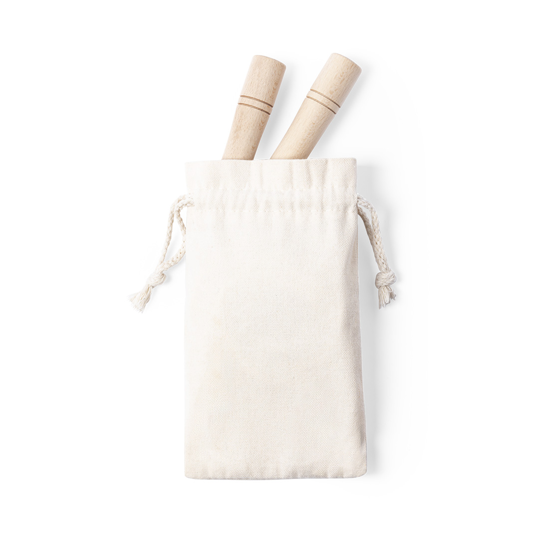 Comba de línea nature, con cuerda extra larga de 3m fabricada en algodón de acabado natural. Mangos ergonómicos fabricados en resistente madera de haya y presentada en funda de algodón natural con cierre de cordón.