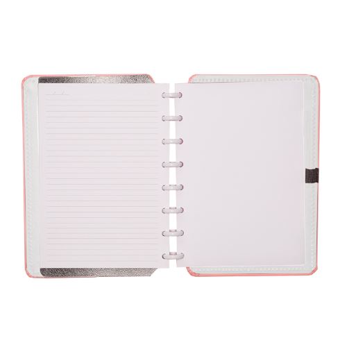 Puedes personalizar el cuaderno inteligente Rosa Pastel a tu estilo: retirar y recolocar las tapas de las portadas, las hojas, cambiar los discos y usar diferentes accesorios.