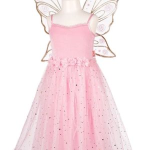 Esta preciosa falda en color rosita con detalles de mariposa te hará viajar hasta un mundo mágico. Con bordado en color dorado.