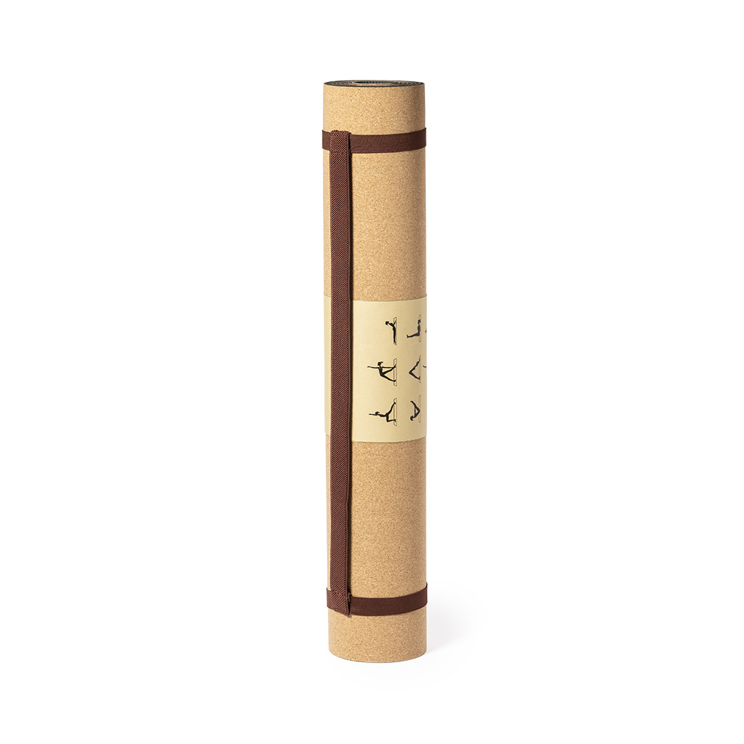 Esterilla de línea nature para la práctica del yoga y otras actividades. Fabricada en resistente corcho natural, con base antideslizante en TPE. Tamaño 60×180 cm, con asa de transporte y presentada en atractiva funda individual de diseño eco, con ilustraciones de ejercicios.