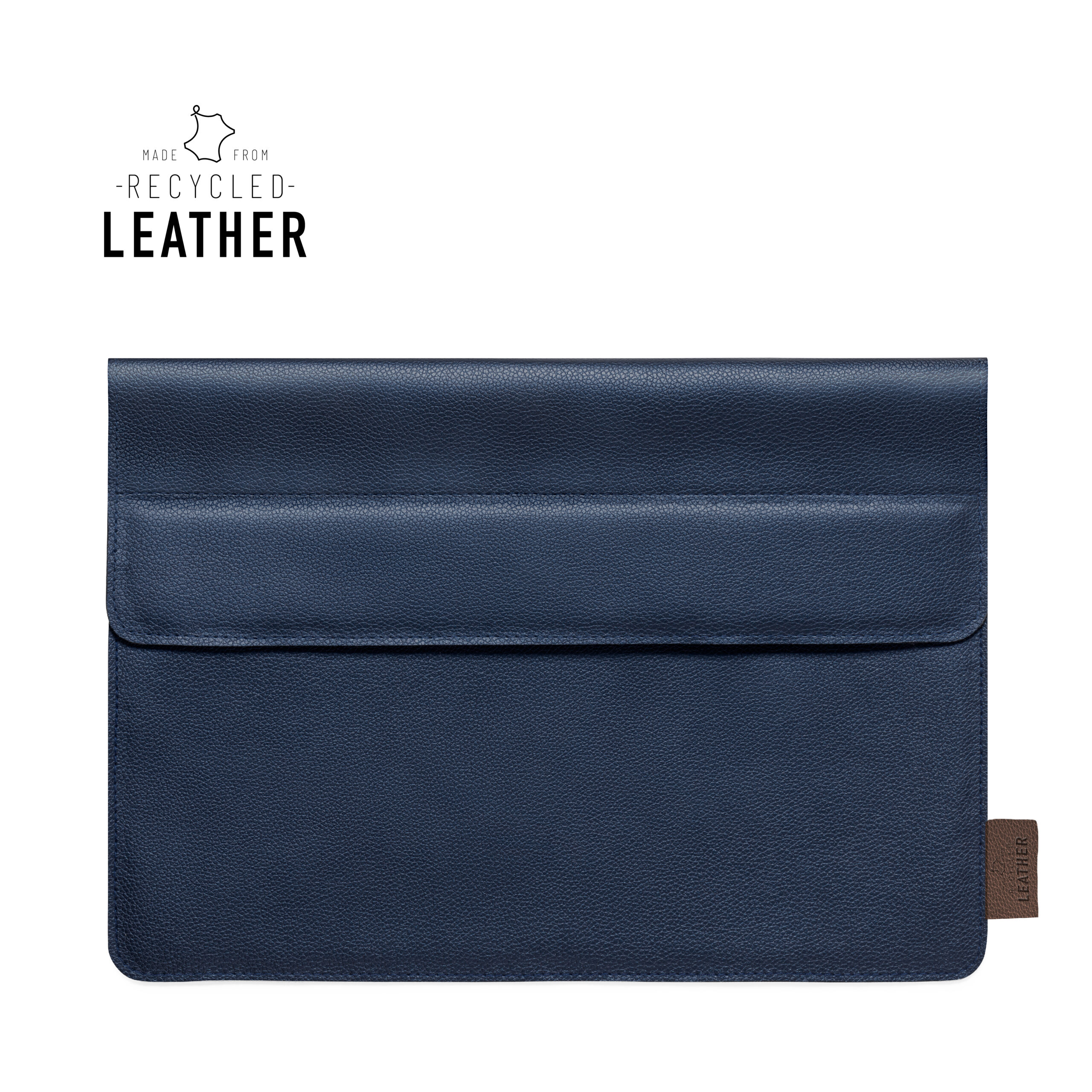 Resistente funda para ordenador portátil de calidad premium, fabricada en cuero reciclado. Compartimento principal con cierre de solapa e interior acolchado. Para ordenador portátil o tablet de hasta 14 pulgadas. Etiqueta exterior con distintivo cuero reciclado. El cuero reciclado rescata las fibras desechadas en los procesos de fabricación del cuero, minimizando el desperdicio de material, contribuyendo a reducir el impacto ambiental y manteniendo a la vez sus propiedades originales.