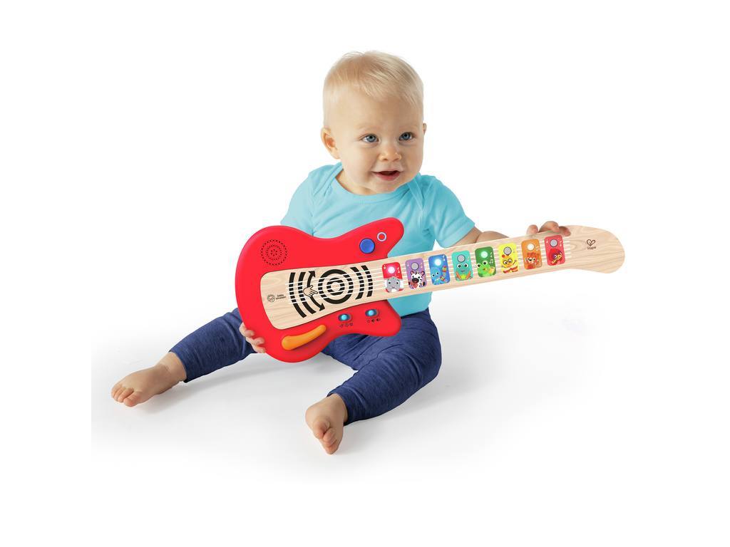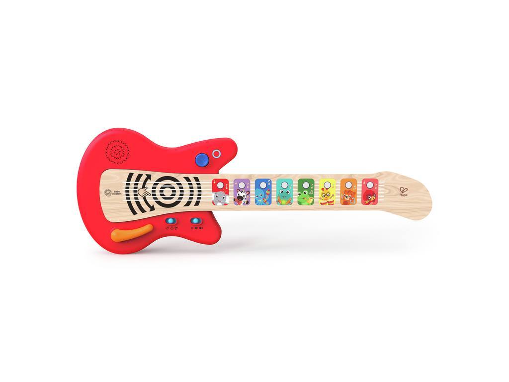 Observa a tu pequeño compositor crear canciones como solista o tocar con amigos (o contigo) en su primera banda utilizando la innovadora función de reproducción conectada. Juega solo o con amigos y familiares; Presione el botón conectado para vincular varios instrumentos; Los instrumentos se armonizan mágicamente, por lo que no importa cuántos niños estén tocando, la música siempre está perfectamente sincronizada; 3 modos: 1) Juego libre: rasguea y presiona los trastes para cambiar el acorde; La barra whammy toca riffs solistas geniales; 2) Compositor: Pulsa las teclas para crear tus propios riffs de guitarra armonizados. 3) Creativo: crea divertidas melodías con sonidos divertidos; Teclado de madera con tecnología Magic Touch; Patrón de juego de rasgueo de simulación, diseño sin cuerdas; Luces LED de colores Control de volumen para agudos y graves.