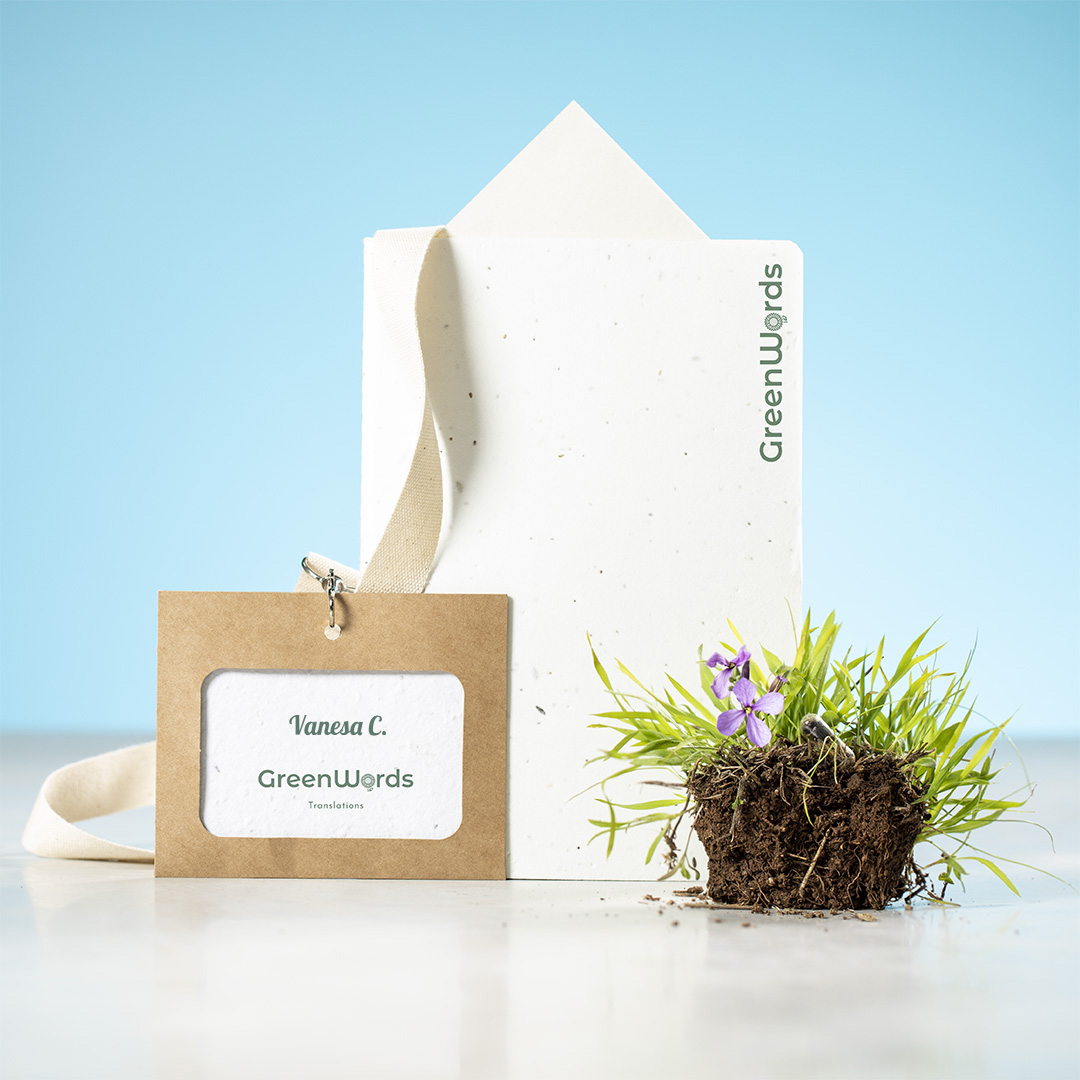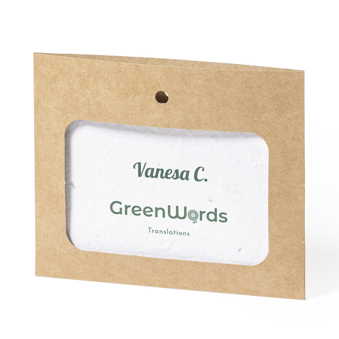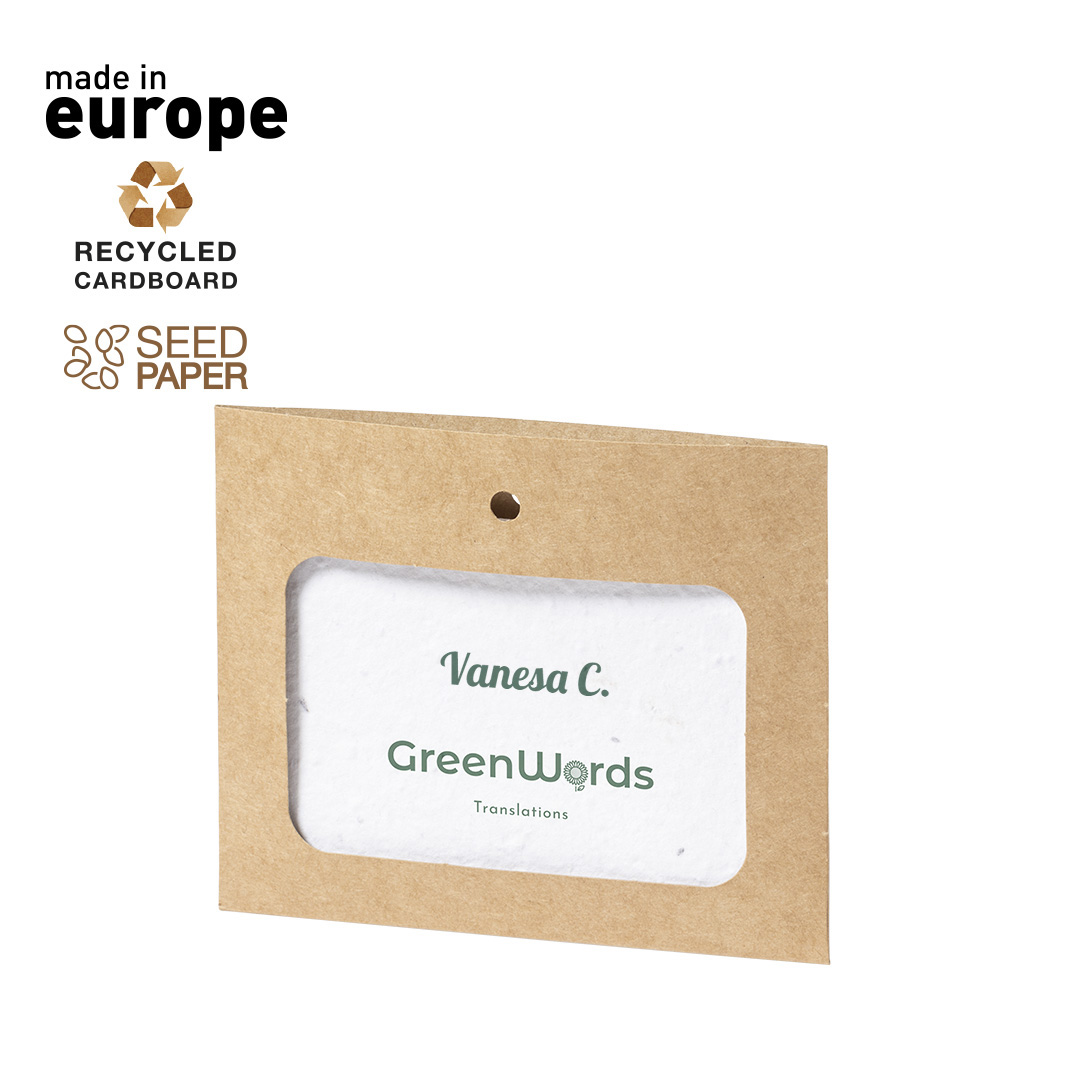 Identificador en cartón reciclado. Incluye tarjeta con semillas de flores silvestres, convirtiéndolo así en papel plantable al final de su vida útil. Flores silvestres en colores surtidos, con instrucciones de plantado en el interior y distintivo Made in Europe.