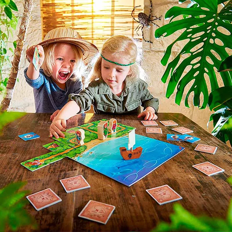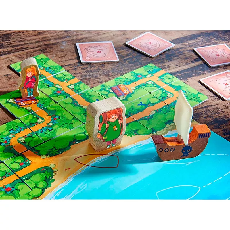 ¿Habéis oído hablar de la misteriosa isla Karuba? Dicen que en ella se esconden grandes tesoros y estos tres pequeños exploradores están decididos a encontrarlos. ¿Los ayudamos? Para ello, tendremos que trabajar en equipo para crear los caminos correctos que los guíen hasta ellos. Pero tendremos que vigilar y ser muy rápidos, porque en la espesa selva puede haber algún tigre escondido que nos corte el paso y a lo lejos se acerca un barco pirata que también ¡viene en busca de los tesoros!