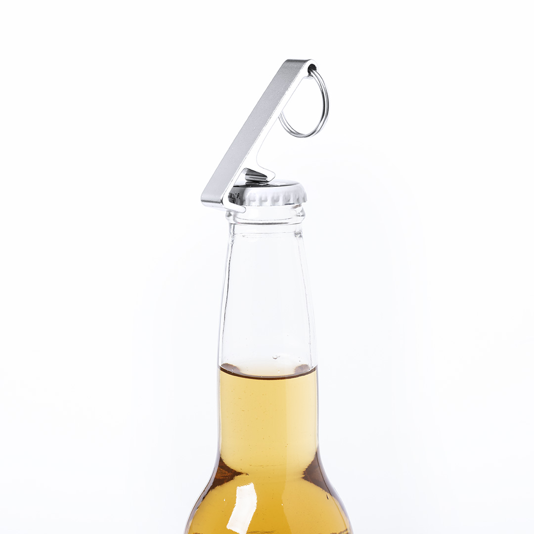 Llavero soporte para smartphone y tablet fabricado en aluminio de acabado mate, especialmente dise帽ado para marcaje en l谩ser. Presentaci贸n individual en bolsita autocierre.