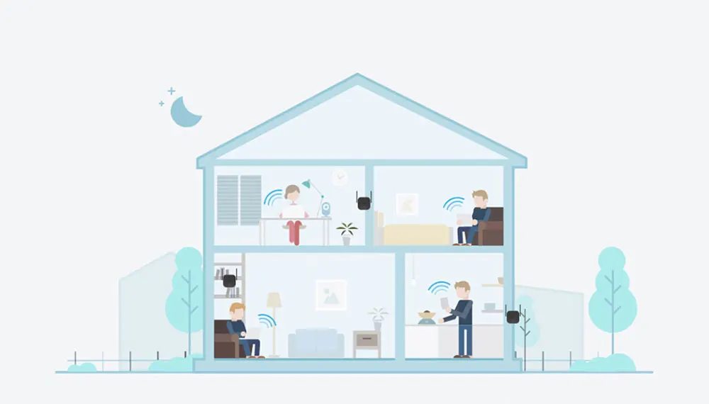 Impulse su red inalámbrica:Mi Wi-Fi Range Extender Pro se conecta a su enrutador de forma inalámbrica, fortaleciendo y expandiendo su señal a todos los rincones de la casa, incluso a esos lugares difíciles de alcanzar, como baños, balcones, dormitorios.