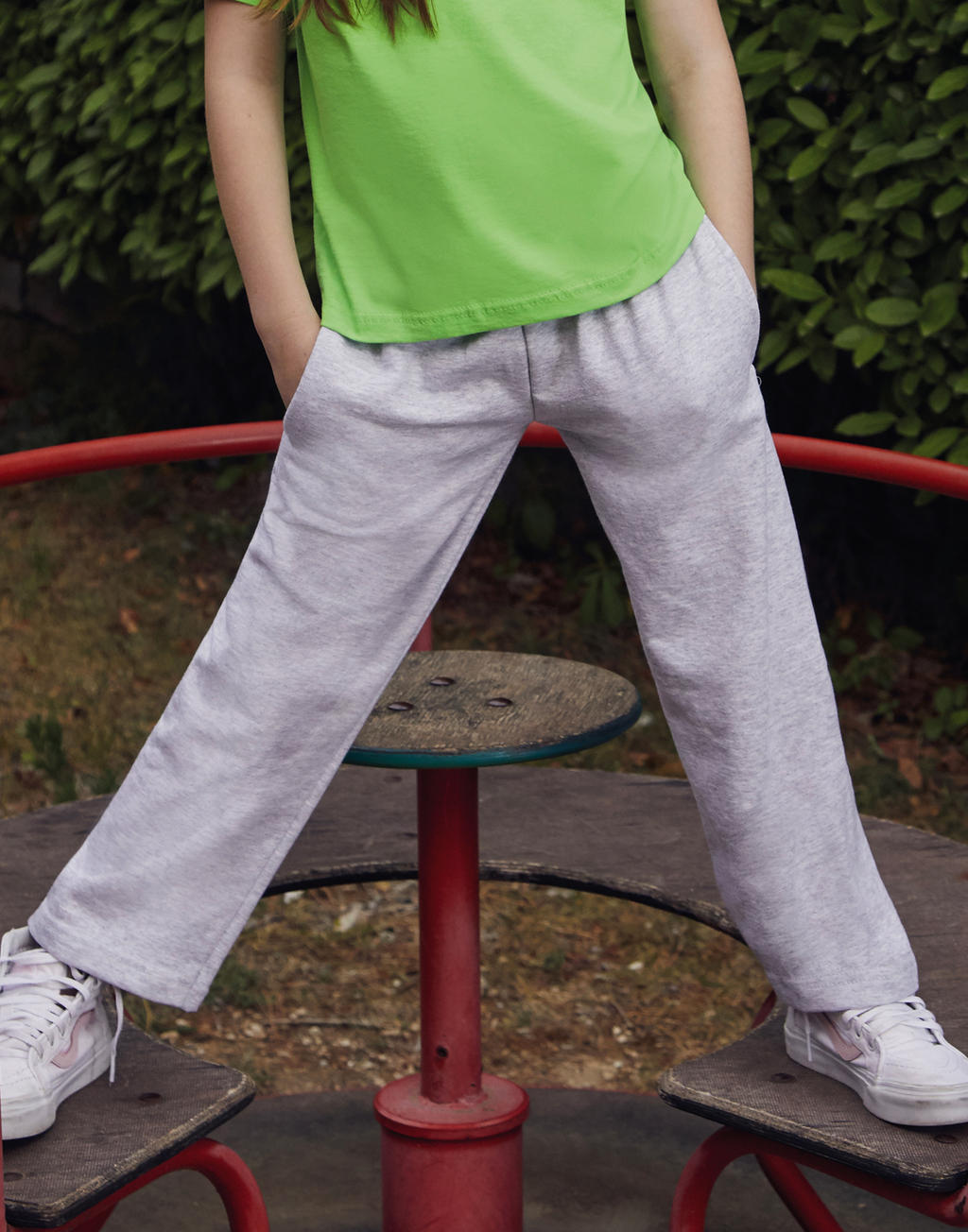 路240 g/m虏 路80% algod贸n, 20% poli茅ster 路Tejido ligero sin felpar 路Cintura el谩stica con cord贸n continuo, cumpliendo la legislaci贸n europea de ropa infantil 路Bolsillos laterales 路Bajos abiertos