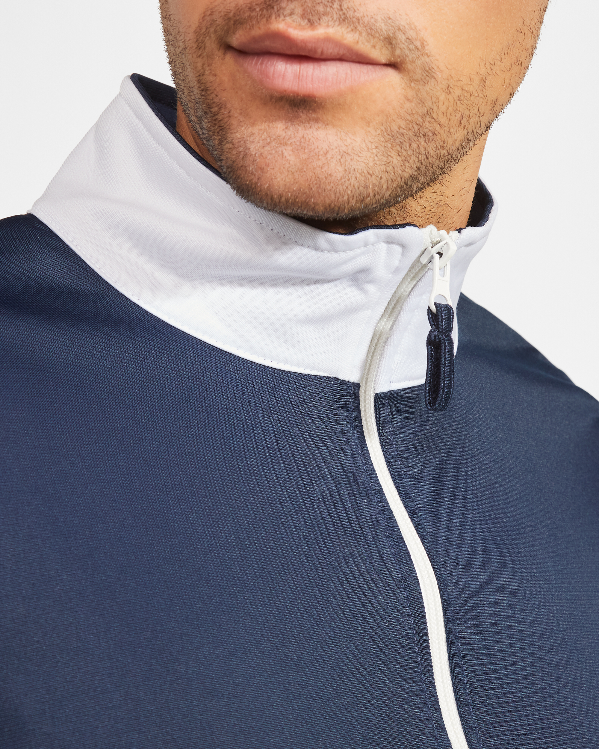 ·Cremallera central con cubrecosturas interior de adorno en contraste.