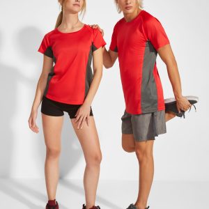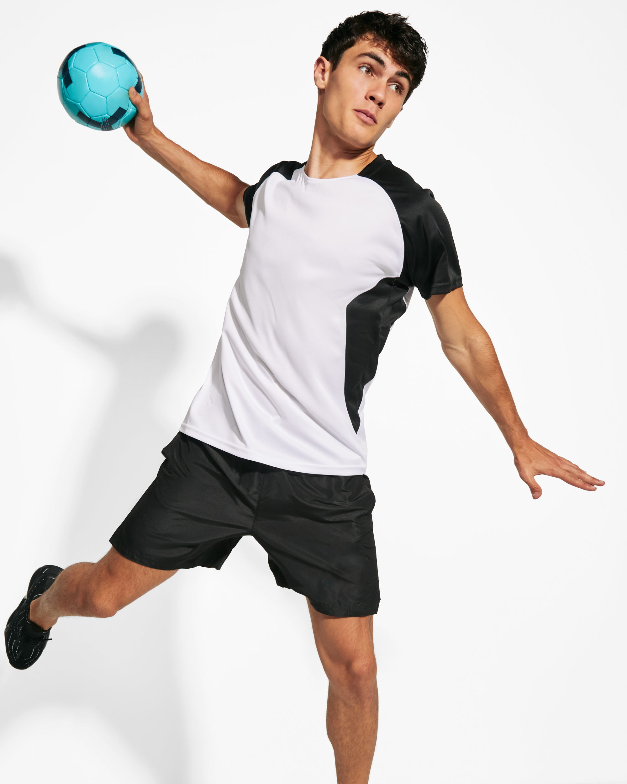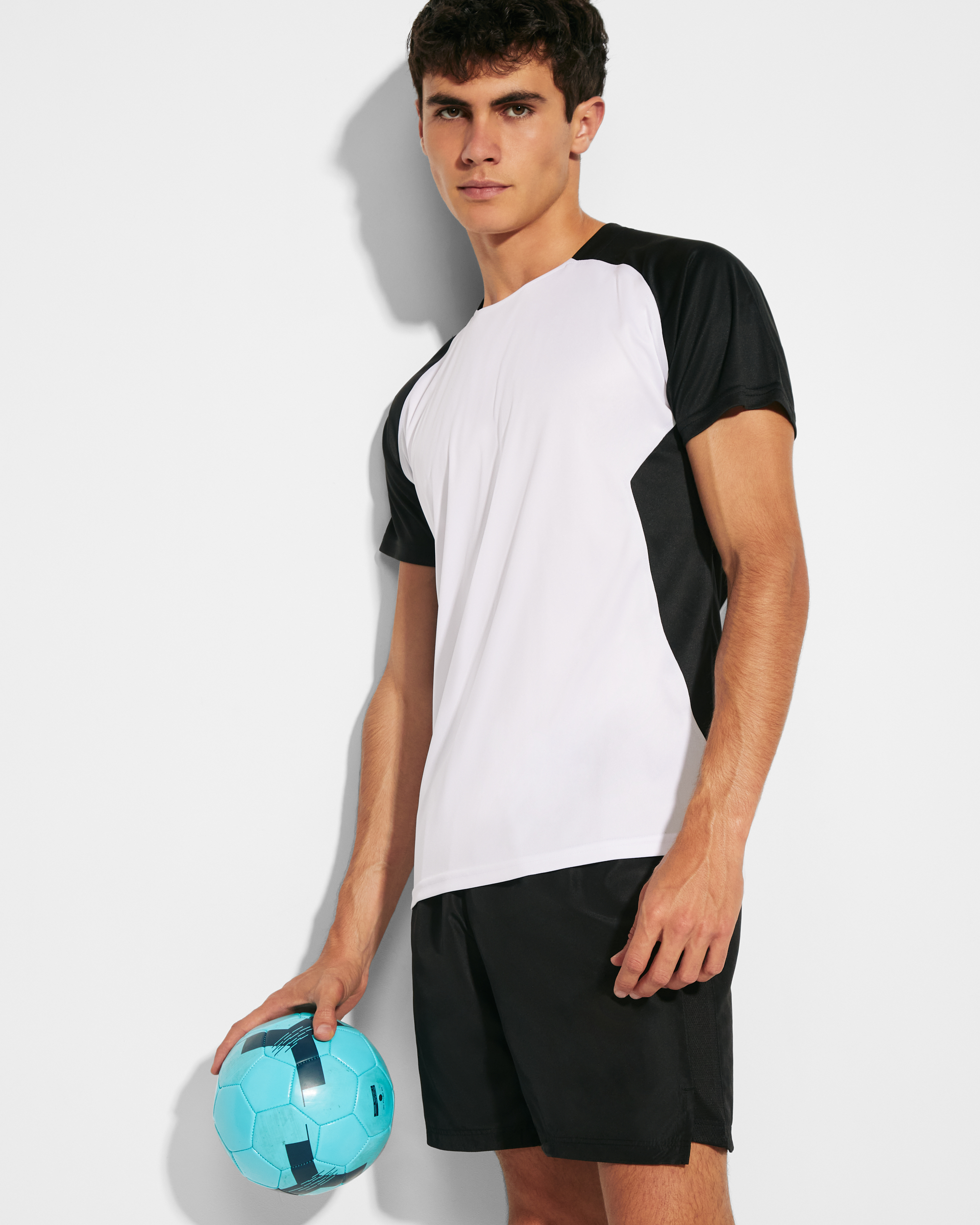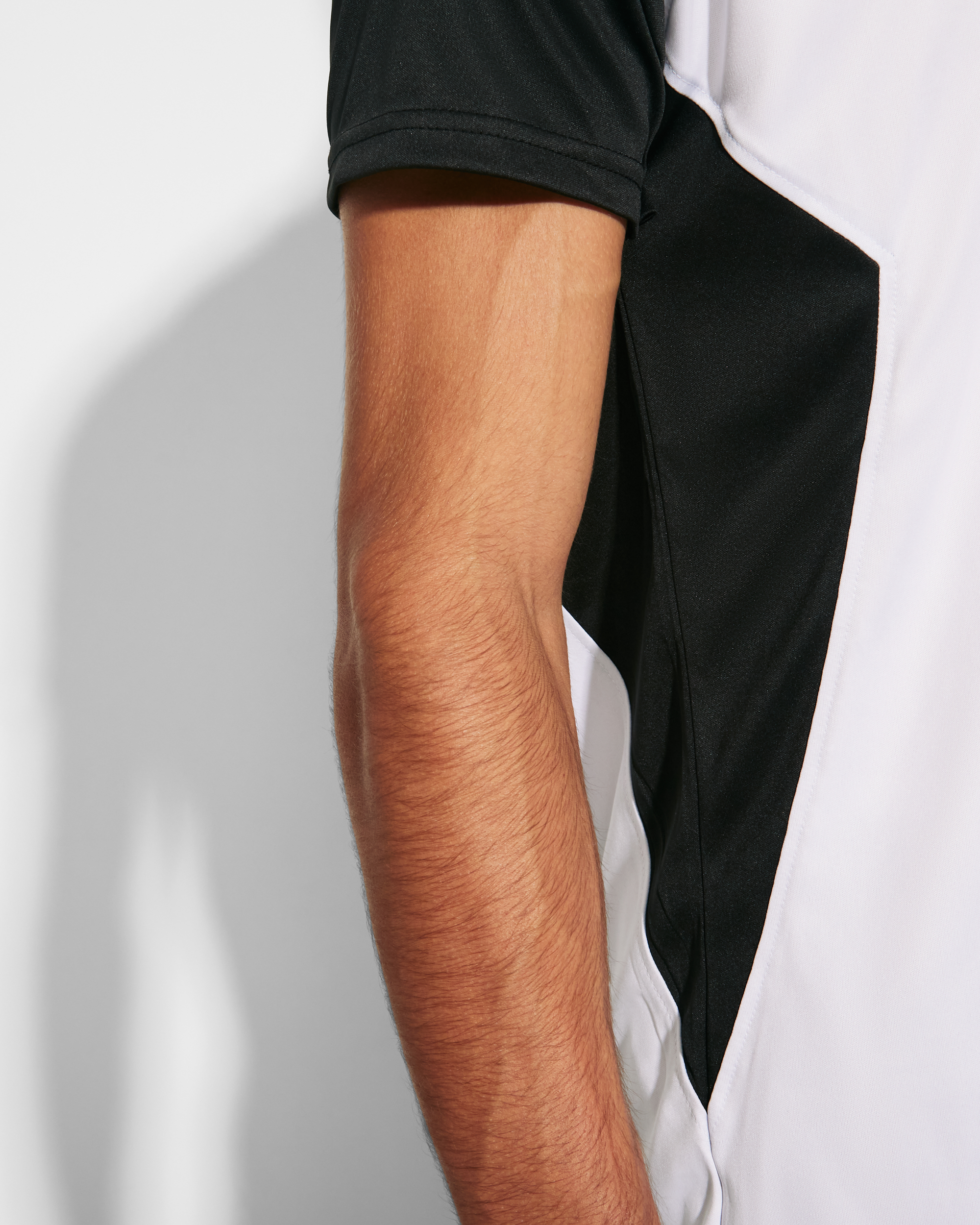 Camiseta técnica de manga ranglán transpirable. Cuello redondo con cubre costuras a tono. Tejido suave, ligero y fácil secado. Mangas y paneles laterales a contraste.