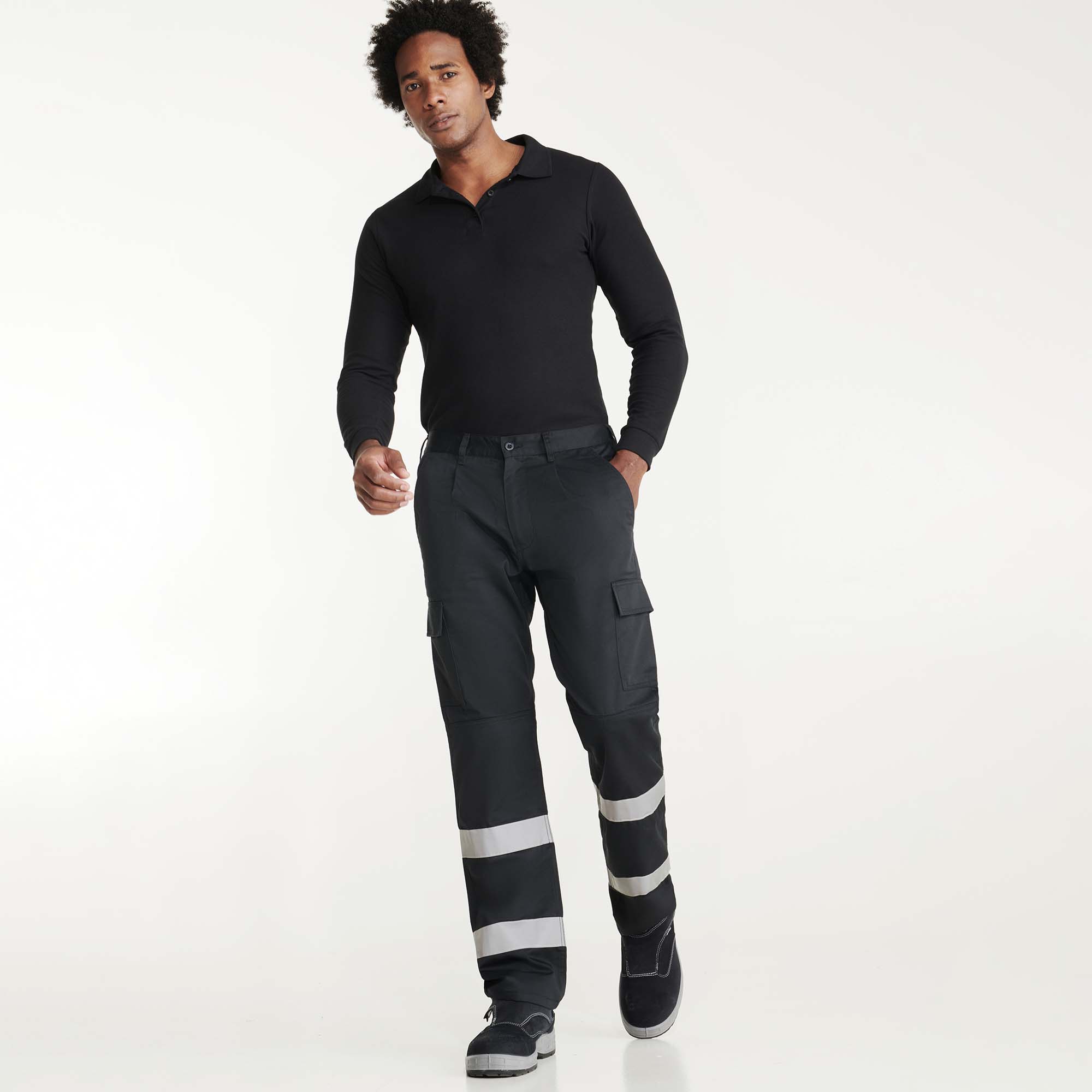 Pantal贸n largo de visibilidad nocturna con tejido resistente.