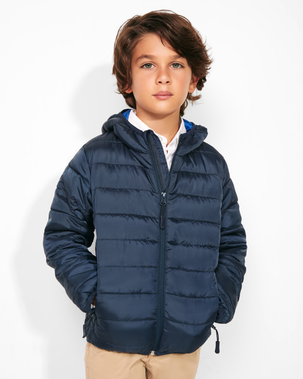 ·Ribete elástico a tono en puños, bajos y apertura de capucha.