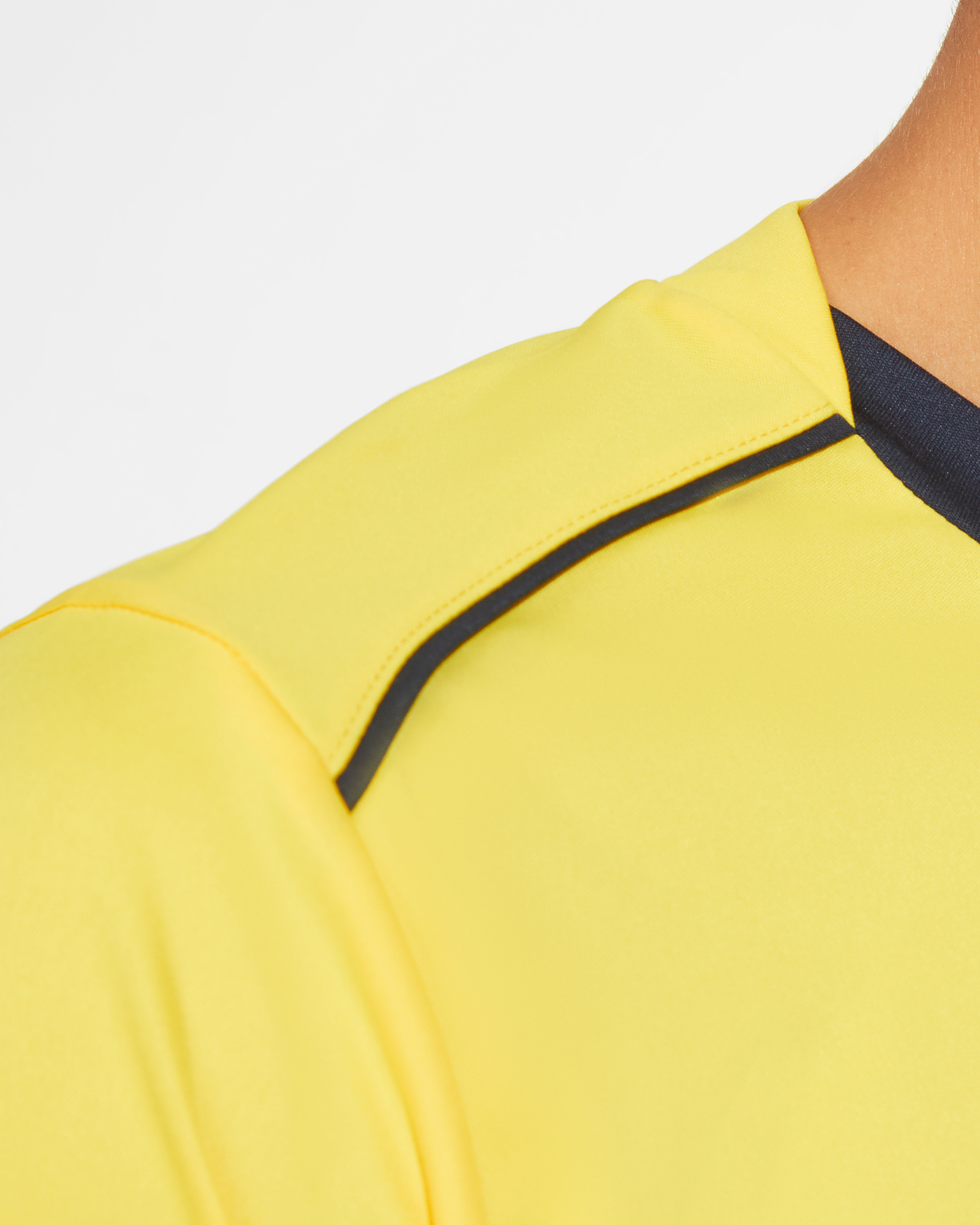 路Camiseta con doble cuello de fantas铆a con acabado en pico con cubrecosturas reforzado en el interior.