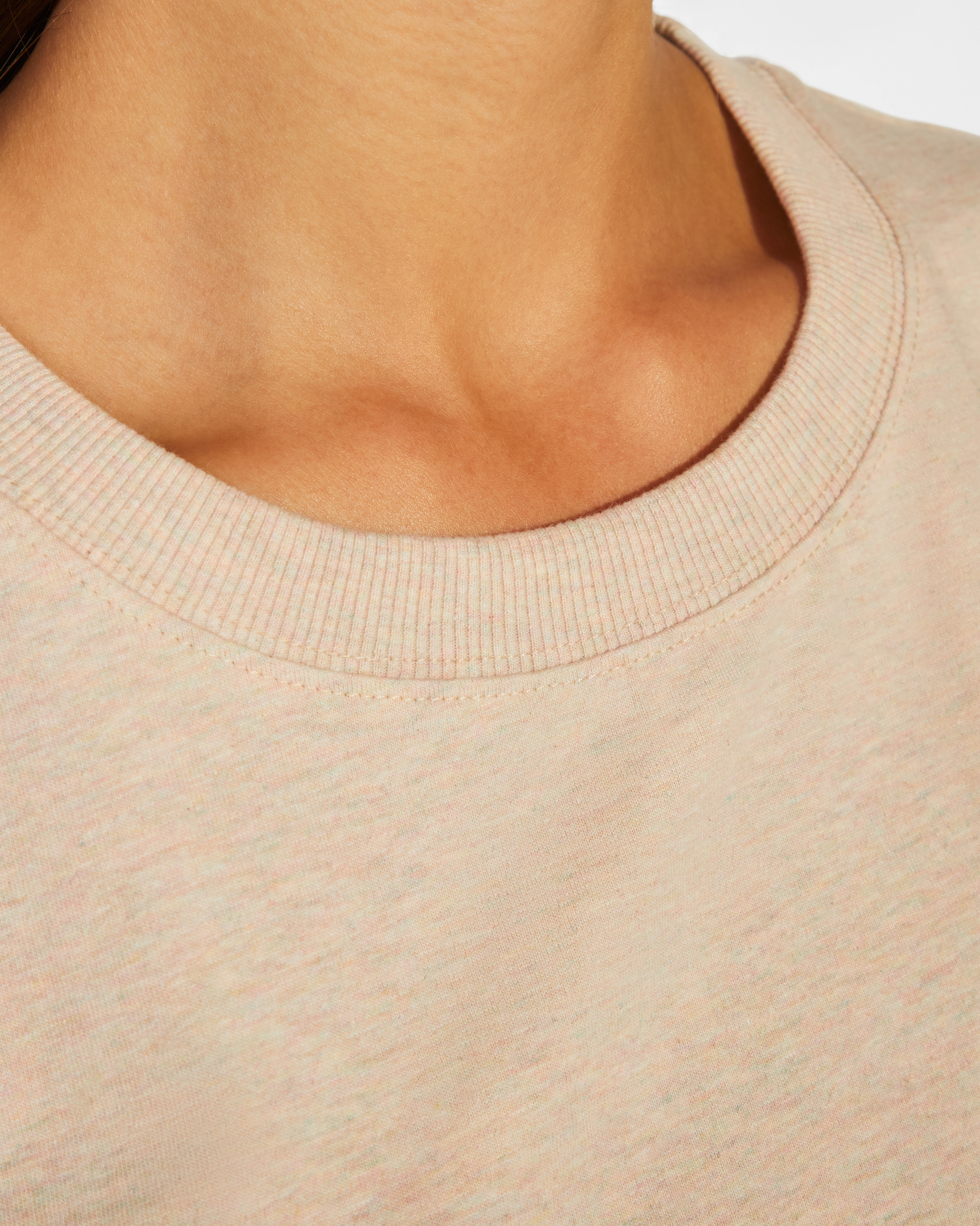 Camiseta gruesa de mujer en manga corta de algod贸n. Cuello redondo y ribete mangas en canal茅 ancho 2×1. Cubrecosturas reforzado en cuello. Costuras laterales. Logo Roly a tono en bajo lateral izquierdo. Costura ancha en el bajo.