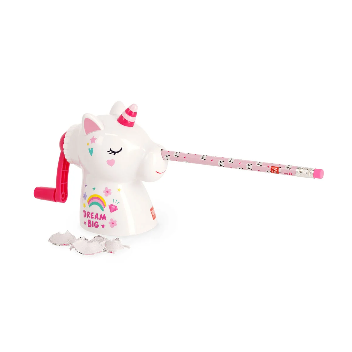 Cuando uno de tus sueños se cumple, solo hay una cosa que hacer: escribir más. Nadie lo sabe mejor que el Sacapuntas de Manivela Dream Big Unicorn de Legami: un amigo colorido y siempre listo para dar una vuelta más.
