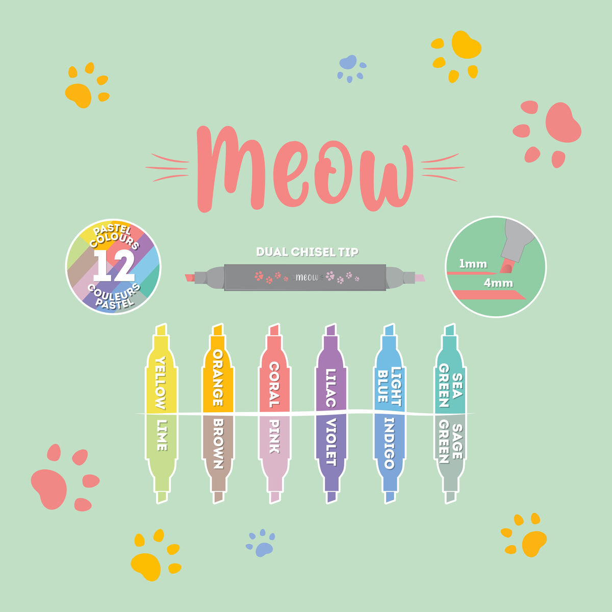 El Set de 6 Subrayadores Pastel con Punta Doble Meow de Legami subrayará con una zarpa felina la información más importante y ronroneará con tus páginas de apuntes. Y tienen mucho más que 7 vidas: gracias a la punta doble, dispondrás de nada menos que 12 colores.