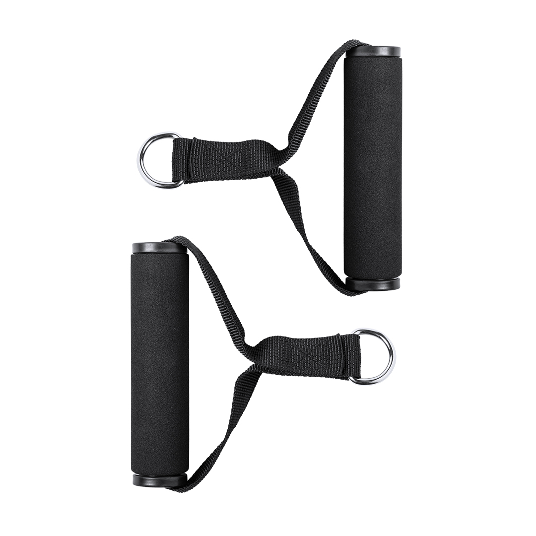 Completo set de gomas elásticas para mantenerse en forma al aire libre o desde casa. Incluye 5 cintas de goma elásticas de diferente color y niveles de resistencia: Amarillo hasta 4,5 kg Azul hasta 6,8 kg Verde hasta 9,1 kg Negro hasta 11,4 kg Rojo hasta 13,6 kg Incluye mosquetones metálicos para un ajuste seguro, 2 asas antideslizantes para las manos, accesorio de anclaje para la puerta y 2 cintas para los tobillos. Presentado en bolsa individual con cierre de cordón y accesorio de ajuste + caja diseño. Con manual de instrucciones en español e inglés.