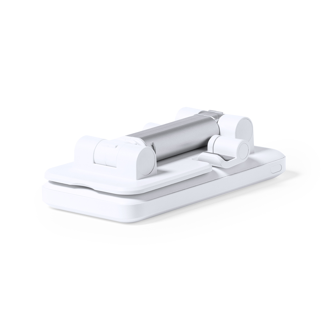 Soporte multifunción plegable todo en uno, fabricado en resistente ABS blanco. Regulable en altura y ángulo para una óptima visualización de la pantalla del smartphone. Cargador inalámbrico 10W integrado y batería de 5.000 mAh, con entrada/salida Tipo C, entrada micro USB y dos salidas USB. Compatible con dispositivos móviles de carga inalámbrica, incluye cable cargador Tipo C y viene presentado en una atractiva caja de diseño.Las capacidades mostradas en todas nuestras baterías auxiliares externas son reales, incorporando todas ellas baterías de grado A y no recicladas, con una vida útil de al menos 500 ciclos de carga y según normativa CE. Además, están fabricadas conforme a los estándares RoHS y en cumplimiento con los siguientes requisitos de seguridad: Sistema de protección contra sobrecarga del power bank. Sistema de protección contra descarga completa que proporciona una mayor durabilidad del power bank. Sistema de bloqueo para evitar cortocircuitos. Sistema de transferencia de carga constante, acorde con la capacidad del dispositivo de destino.