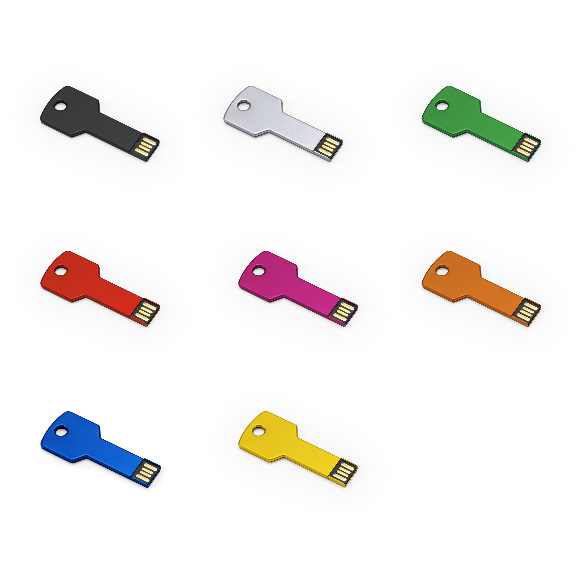 Memoria USB 2.0 de aluminio con diseño extraplano en forma de llave. Dispone de una capacidad de 16 GB.