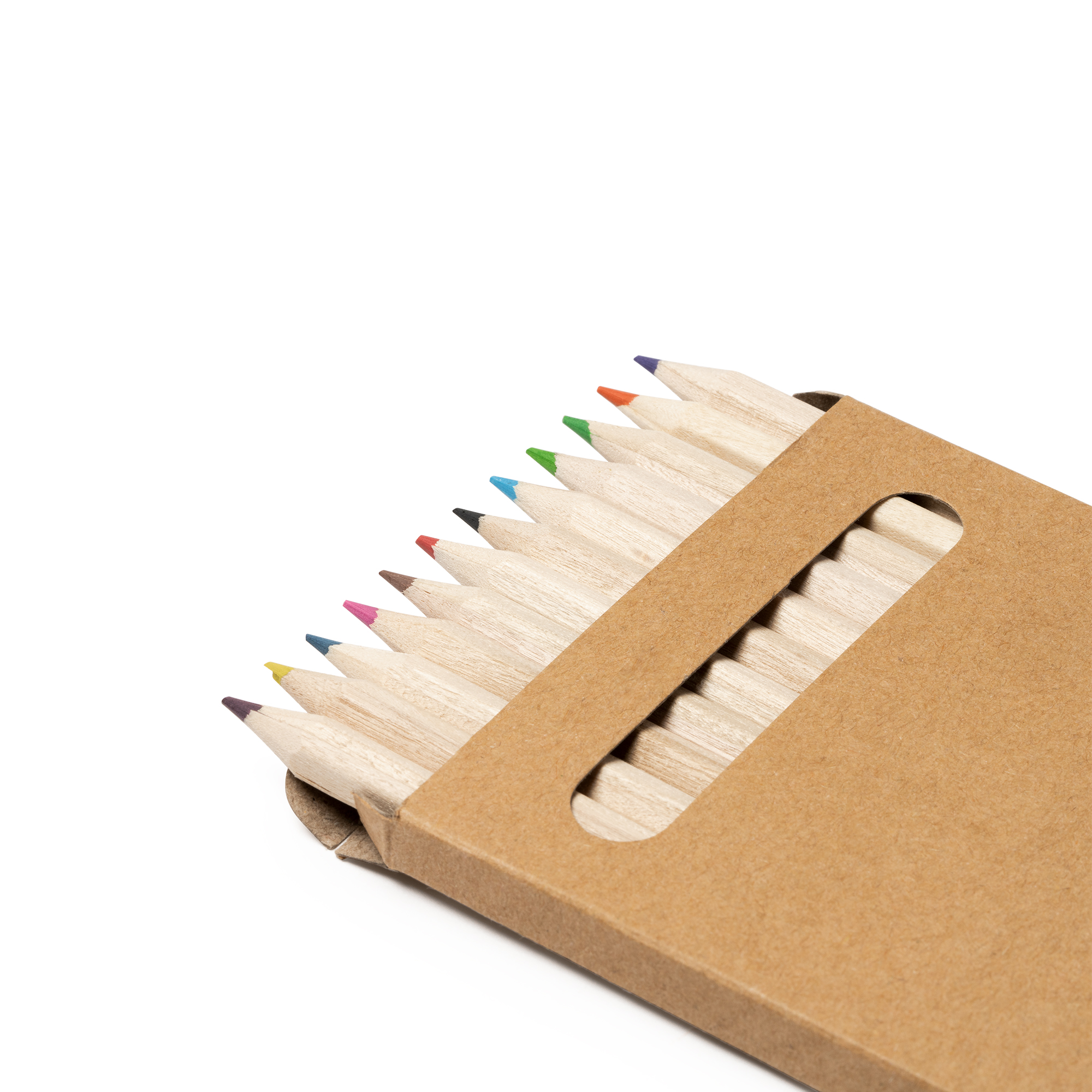Set de 12 lápices de madera en caja de cartón reciclado.