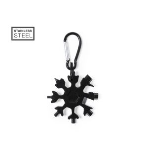 Multiherramienta con cuerpo y accesorios en acero inoxidable y empuñadura de bambú. 12 funciones: navaja, sierra, limas, abridores, destornilladores y alicates. Incluye cinta para transporte.