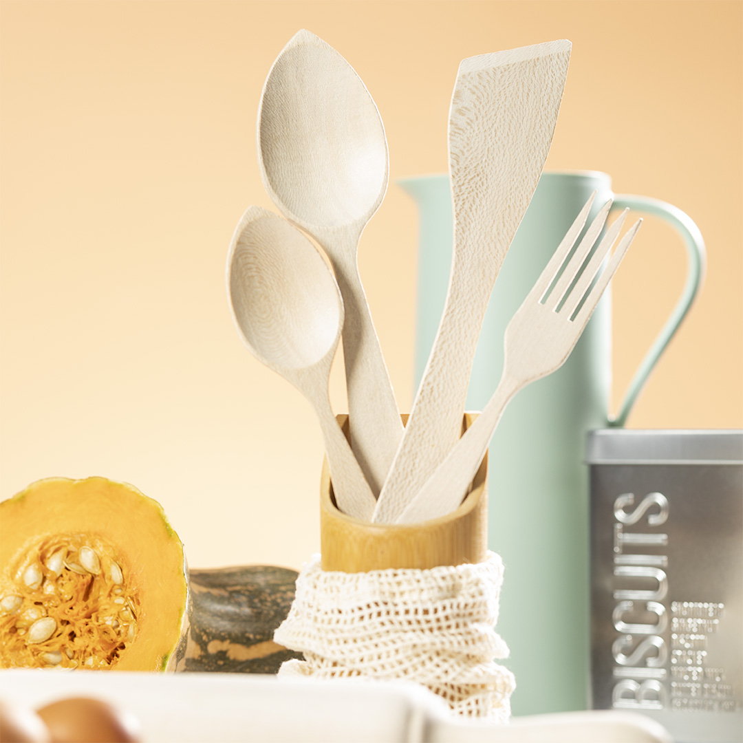 Tenedor mediano de fabricación europea y hecho en madera natural, con cómodo mango. Incluye certificación PEFC, contribuyendo así a la preservación de los bosques y la biodiversidad forestal.