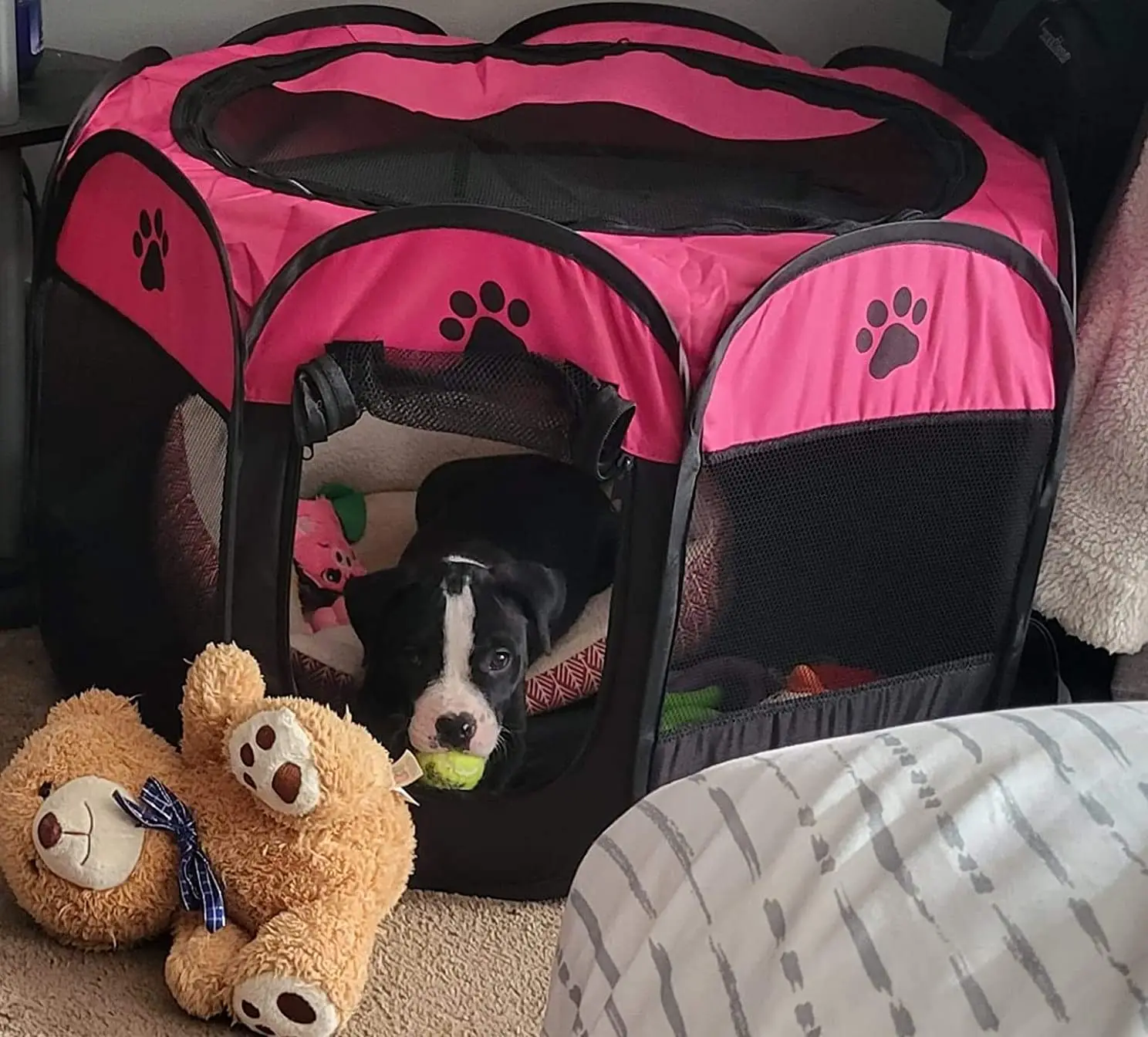 1. La tienda plegable para mascotas proporciona un espacio cómodo y transpirable para que su mascota juegue.