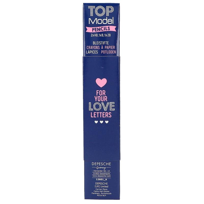 Cada lápiz es un acierto de TOPModel. Este set de lápices consta de 4 lápices de diseños alegres y coloridos con maravillosos motivos de modelos. Grados de dureza diferentes: 2 x HB, 1 x 2B y 1 x B.