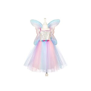 La pequeña elfa Annemarie se pasea con su vestido de elfo más hermoso a través del jardín mágico, buscando a los otros elfos.