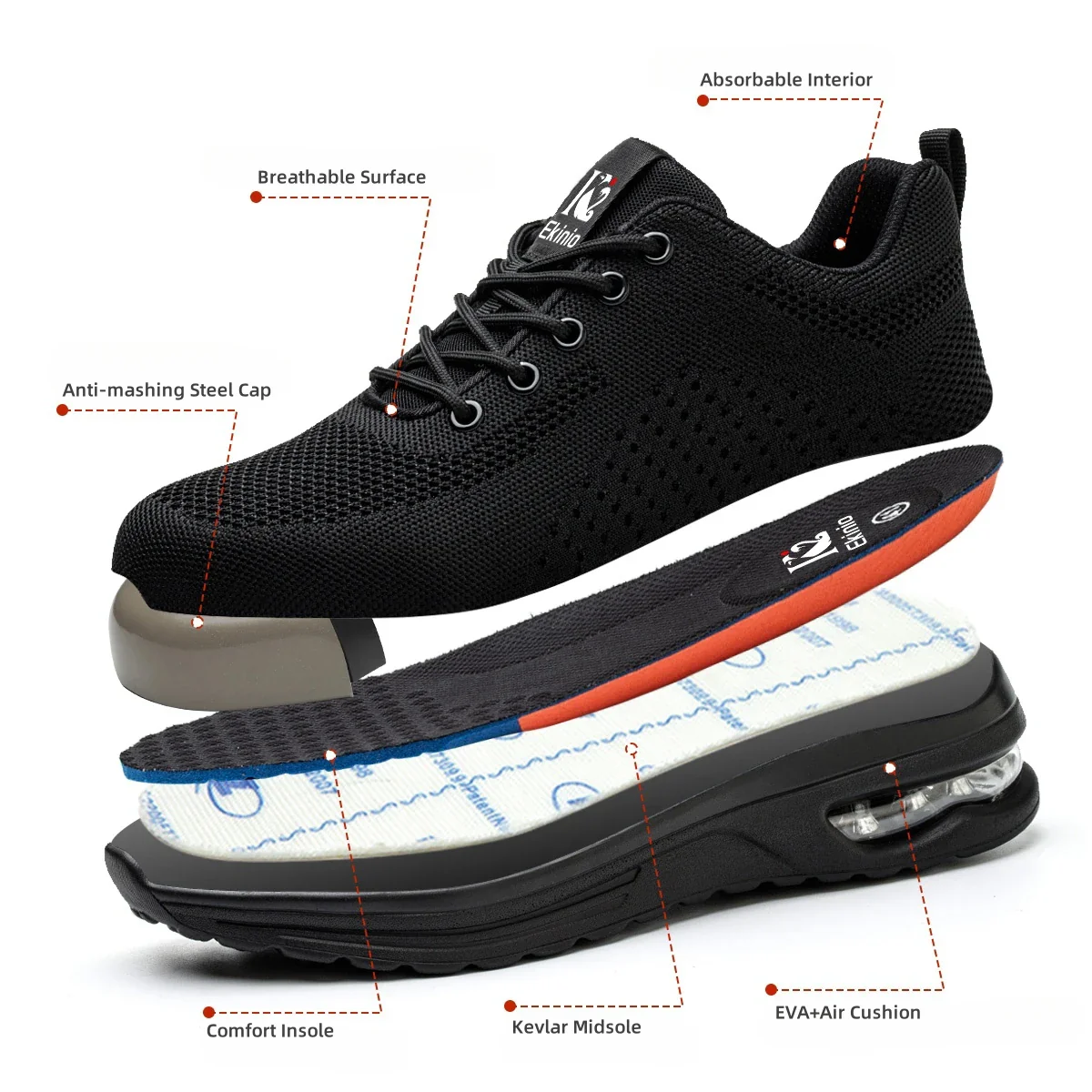1. Informaci贸n del producto: zapatos de trabajo, zapatos de seguridad (antiimpacto, antipinchazos, antideslizante), parte superior de punto transpirable, interior c贸modo, plantilla de alta calidad, amortiguaci贸n de alta elasticidad, suela integrada multifuncional, ampliamente utilizado,